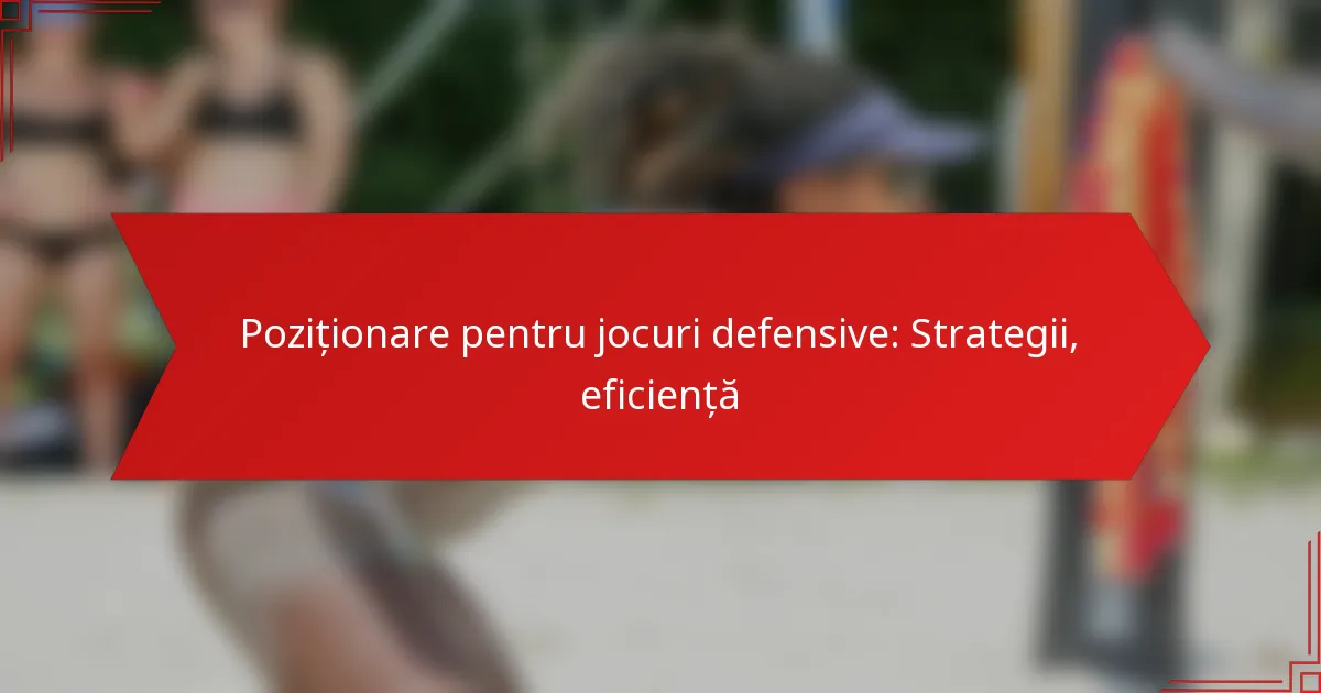 Strategiile de poziționare defensivă sunt esențiale pentru a contracara eficient adversarii în diverse sporturi. Aceste strategii implică tehnici și forme specifice care ajută echipele să mențină controlul, să limiteze oportunitățile de a marca și să se adapteze la stilul de joc al adversarului.
